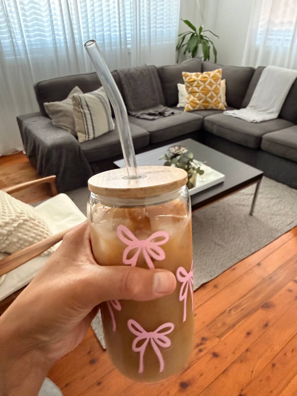 A preschooler gave me this glass for Christmas, and I love using it for iced coffees. It feels kind of fancy drinking from a glass straw. Hehe.